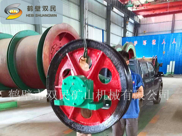 鑿井懸吊天輪是煤礦鑿井立井施工中為絞車鋼絲繩提供支撐和導向的專用設備。按鑿井絞車的性能,鑿井懸吊天輪分為雙槽懸吊天輪和單槽懸吊天輪二種。